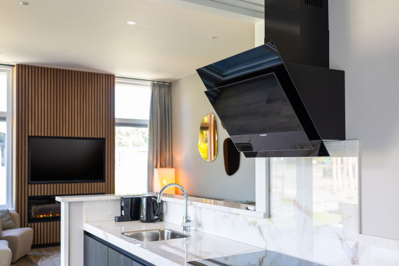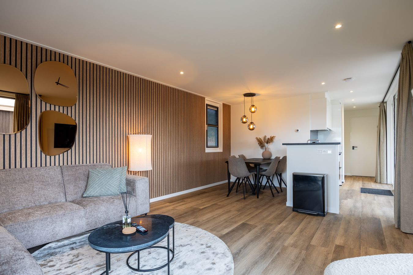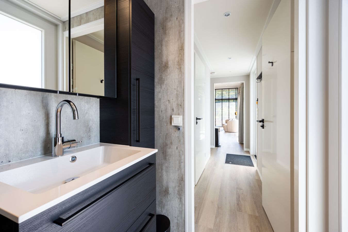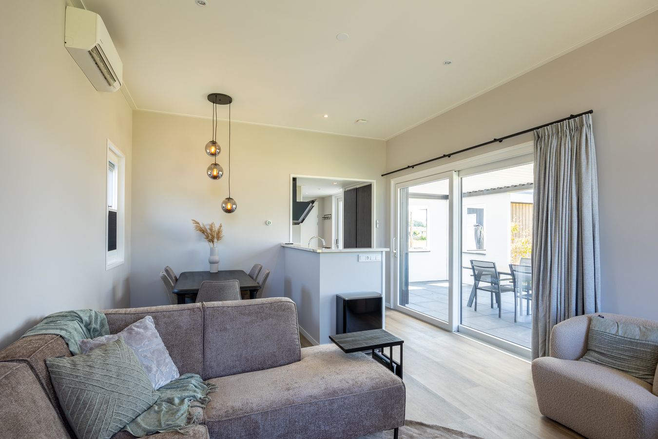 You can also enjoy yourself outside, thanks in part to the terrace with its attractive louvered canopy. A wonderful place to relax all day and evening. Be sure to make use of your own private outdoor spa; what a luxury! You can park your car next to the house. Nice and convenient. And the Wi-Fi? That’s completely free.