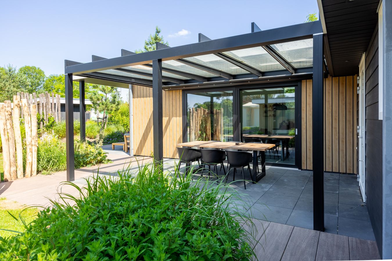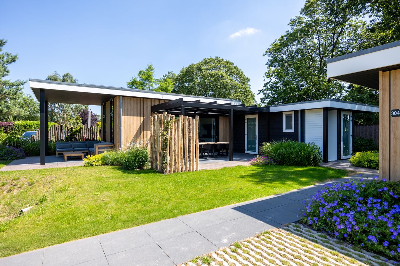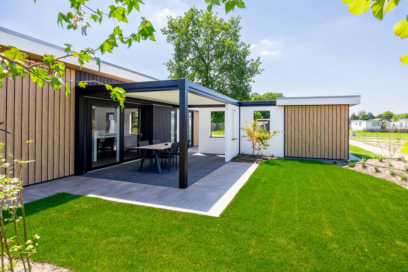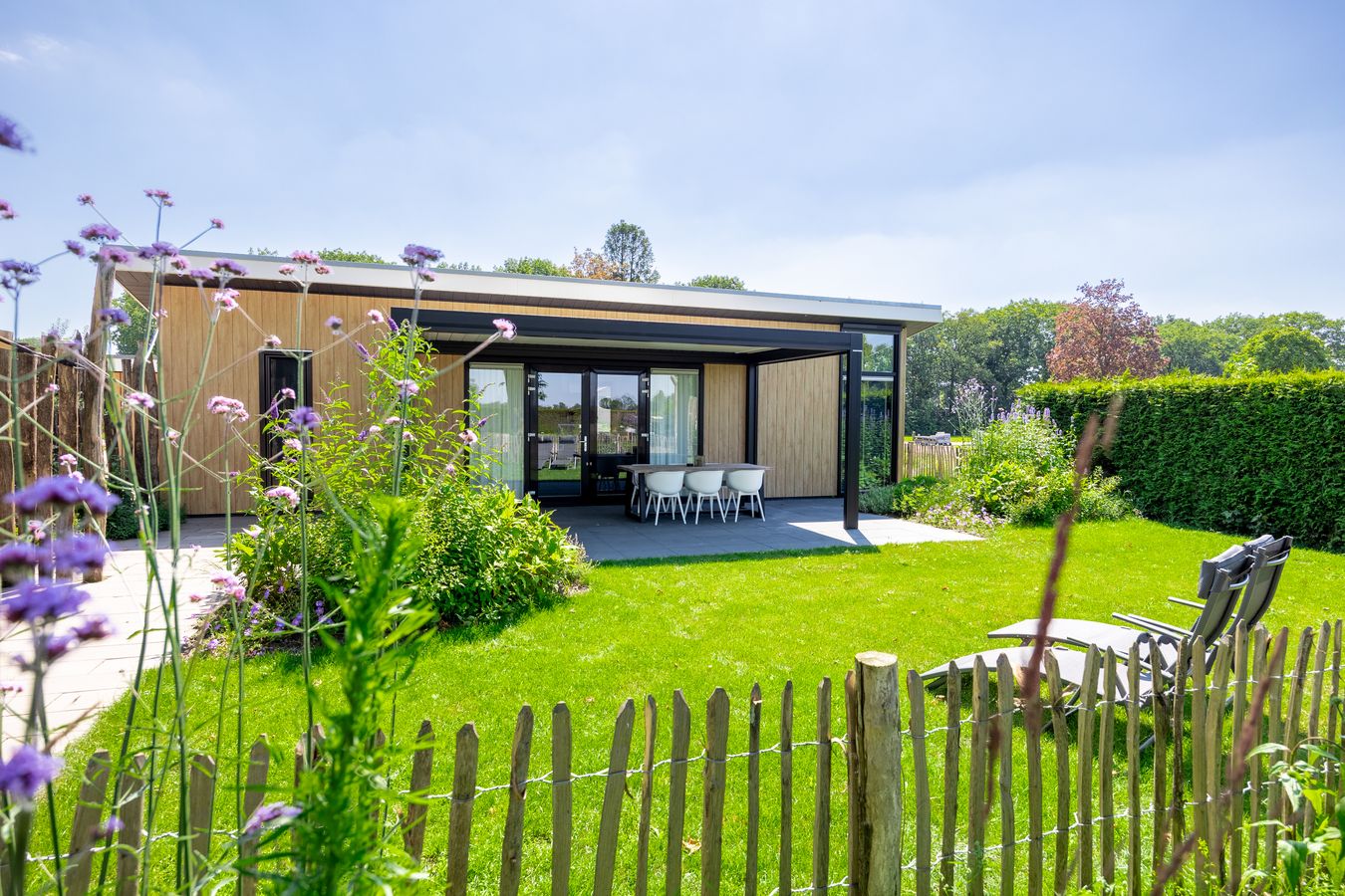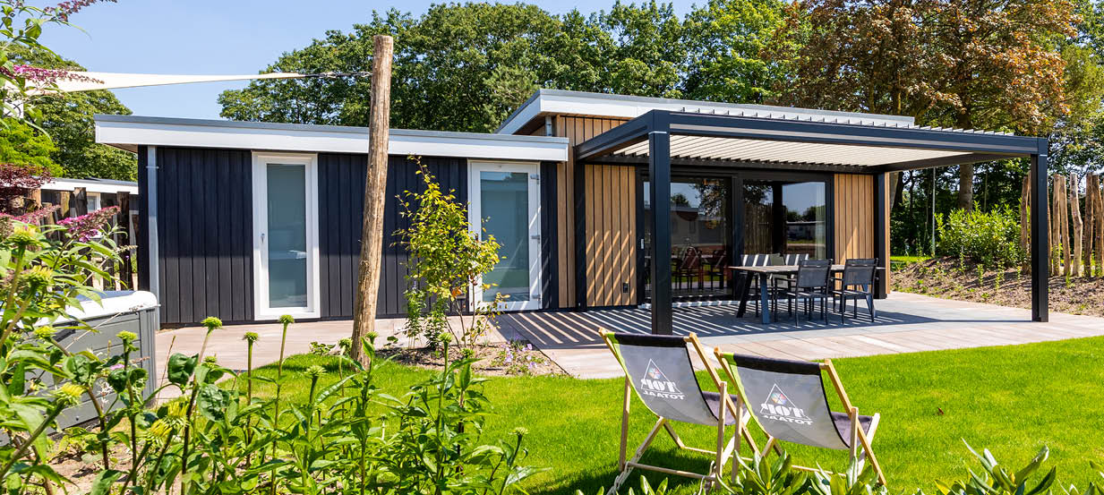 All holiday homes at Familiepark Vredeoord were built by TOP Totaal, so the quality is guaranteed! The holiday houses are spacious and attractively furnished. You can count on good beds, a comfortable bathroom and a luxury kitchen with built-in appliances. Outside is just as enjoyable: every holiday villa has a garden with a terrace.